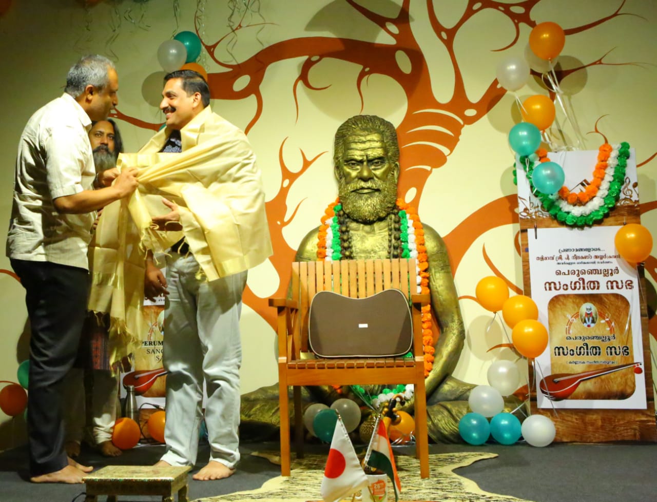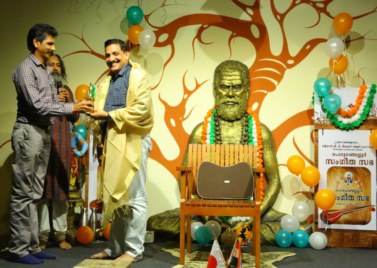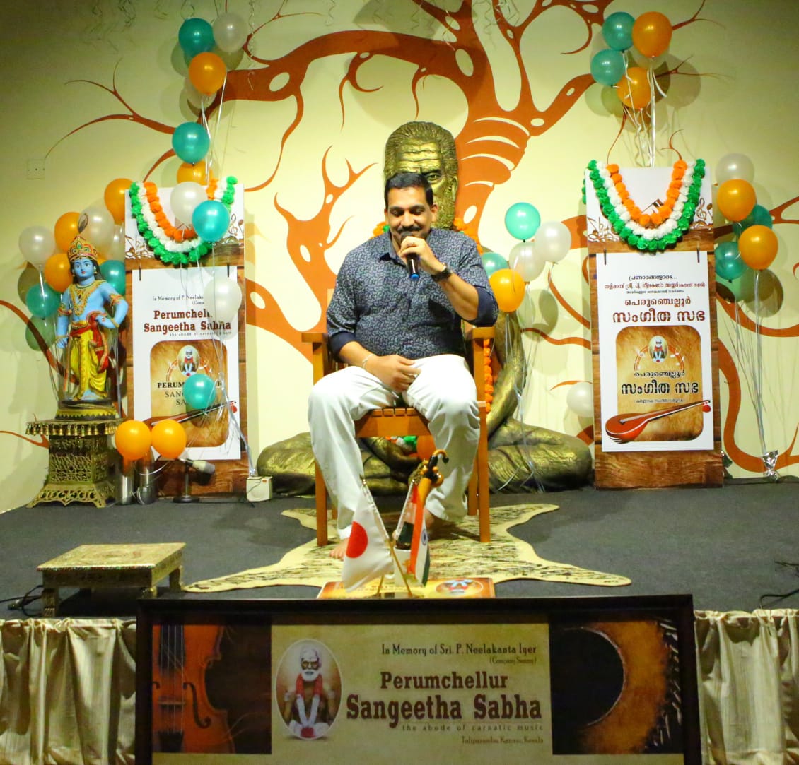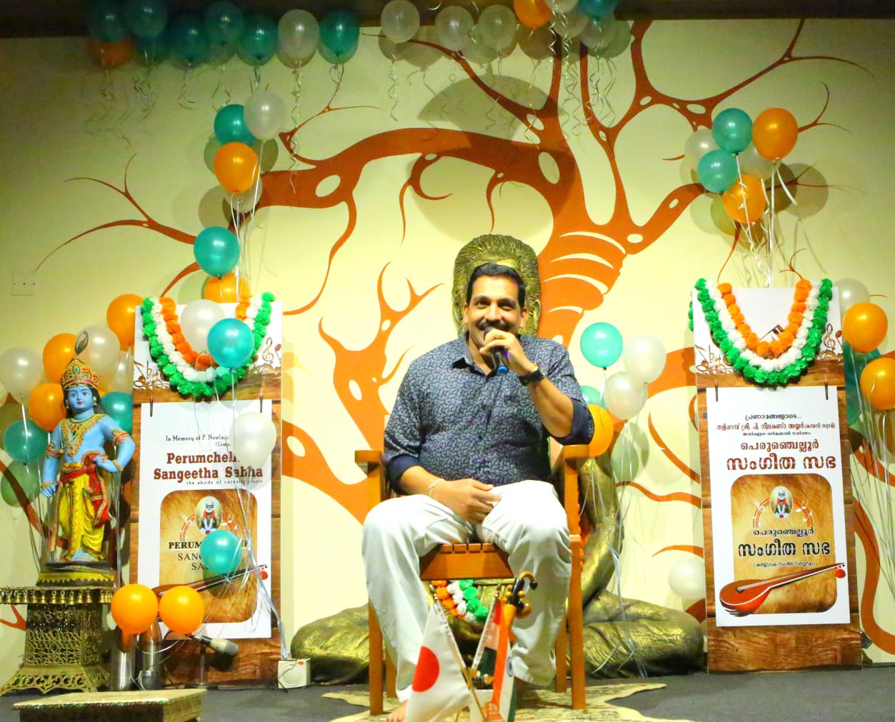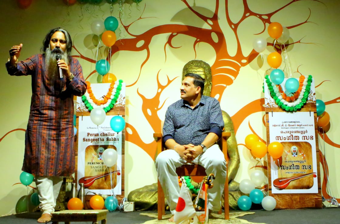 ഭാരതത്തിന്റെ വീരപുത്രൻ കണ്ണൂർ അഴീക്കോട് സ്വദേശിയായ എൻ.എസ്.ജി. കമാൻഡോ ശൗര്യചക്ര സുബേദാർ പി.വി.മനേഷ് നെ പെരുഞ്ചെല്ലൂർ സംഗീത സഭ ആദരിച്ചു. 2008 നവമ്പർ 26 ന് മുംബൈയിൽ താജ് ഹോട്ടലിനു നേരെ ഭീകരവാദികൾ ആക്രമണം നടത്തിയപ്പോൾ അതിനെ പ്രതിരോധിക്കുന്നതിനിടയിൽ തലയ്ക്ക് മാരകമായി പരിക്കേറ്റിട്ടും പൊരുതിനിന്ന പോരാട്ട വീര്യമാണ് മനീഷ്. ഇന്ത്യൻ സൈനീകർക്ക് ആവേശമായി മാറിയ മനേഷ് ജനാധിപത്യത്തിന്റെയും ധാർമ്മികതയുടെയും വിജയമായാണ് മുംബൈ ഭീകരാക്രമണത്തിനെതിരായ ചെറുത്തുനിൽപ്പിനെ കാണുന്നത്. 12 വർഷം മുമ്പ് നടന്ന ആ ജീവൻമരണ പോരാട്ടത്തിന്റെ ഓർമ്മകൾ പുതുക്കി ധീര ജവാൻ പങ്കിട്ടത് ശ്രദ്ധാപൂർവ്വം ശ്രവിച്ചത് നൂറ്റമ്പതിലേറെ പേർ. പെരുഞ്ചെല്ലൂർ സംഗീത സഭയ്ക്ക് വേണ്ടി ഡോ അനിൽ പൊന്നാട അണിയിച്ചും പുഷ്പജൻ തളിപ്പറമ്പ ഉപഹാരമായി വാസ്തു വിളക്കും നൽകി. ജപ്പാൻ വീണ വിദൂഷി യൂക്കോ മാതോബ ഇന്ത്യയും ജപ്പാനും അടങ്ങുന്ന ഇരു ദേശത്തിന്റെ ഫ്ലാഗ് നൽകി നന്ദി സൂചിപ്പിച്ചു.