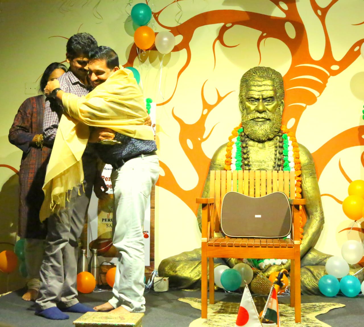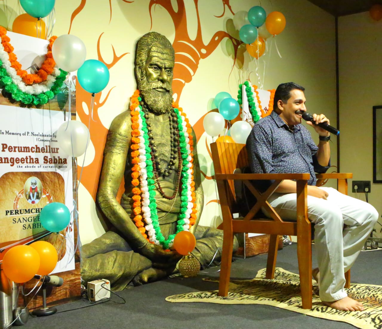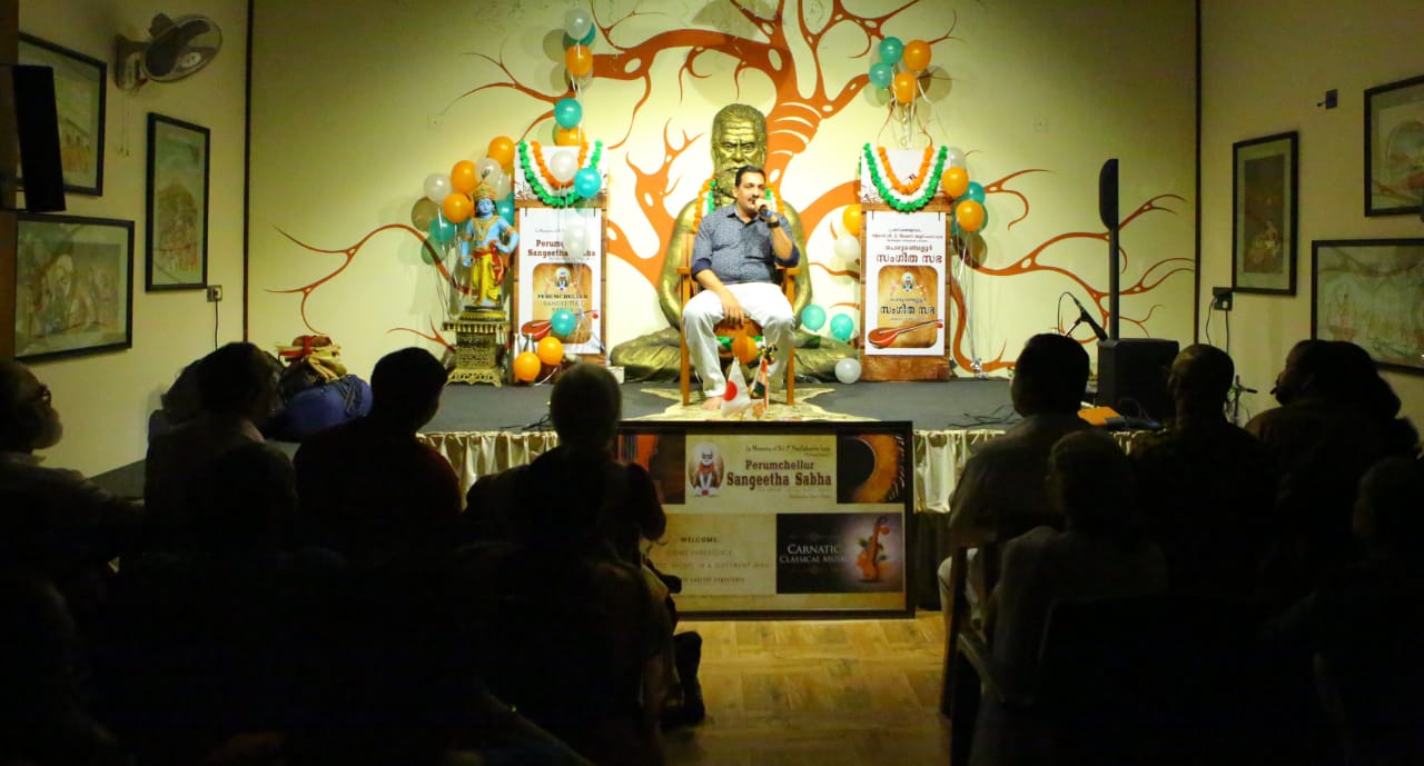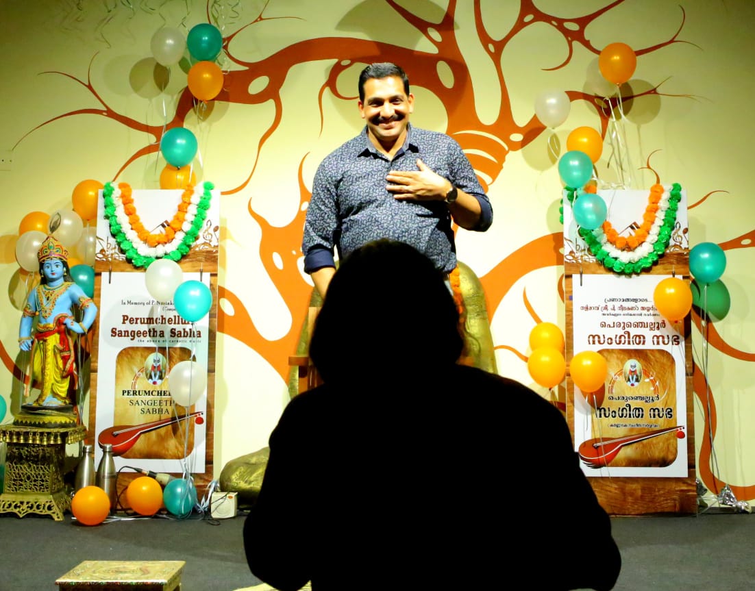 ഭാരതത്തിന്റെ വീരപുത്രൻ കണ്ണൂർ അഴീക്കോട് സ്വദേശിയായ എൻ.എസ്.ജി. കമാൻഡോ ശൗര്യചക്ര സുബേദാർ പി.വി.മനേഷ് നെ പെരുഞ്ചെല്ലൂർ സംഗീത സഭ ആദരിച്ചു. 2008 നവമ്പർ 26 ന് മുംബൈയിൽ താജ് ഹോട്ടലിനു നേരെ ഭീകരവാദികൾ ആക്രമണം നടത്തിയപ്പോൾ അതിനെ പ്രതിരോധിക്കുന്നതിനിടയിൽ തലയ്ക്ക് മാരകമായി പരിക്കേറ്റിട്ടും പൊരുതിനിന്ന പോരാട്ട വീര്യമാണ് മനീഷ്. ഇന്ത്യൻ സൈനീകർക്ക് ആവേശമായി മാറിയ മനേഷ് ജനാധിപത്യത്തിന്റെയും ധാർമ്മികതയുടെയും വിജയമായാണ് മുംബൈ ഭീകരാക്രമണത്തിനെതിരായ ചെറുത്തുനിൽപ്പിനെ കാണുന്നത്. 12 വർഷം മുമ്പ് നടന്ന ആ ജീവൻമരണ പോരാട്ടത്തിന്റെ ഓർമ്മകൾ പുതുക്കി ധീര ജവാൻ പങ്കിട്ടത് ശ്രദ്ധാപൂർവ്വം ശ്രവിച്ചത് നൂറ്റമ്പതിലേറെ പേർ. പെരുഞ്ചെല്ലൂർ സംഗീത സഭയ്ക്ക് വേണ്ടി ഡോ അനിൽ പൊന്നാട അണിയിച്ചും പുഷ്പജൻ തളിപ്പറമ്പ ഉപഹാരമായി വാസ്തു വിളക്കും നൽകി. ജപ്പാൻ വീണ വിദൂഷി യൂക്കോ മാതോബ ഇന്ത്യയും ജപ്പാനും അടങ്ങുന്ന ഇരു ദേശത്തിന്റെ ഫ്ലാഗ് നൽകി നന്ദി സൂചിപ്പിച്ചു.