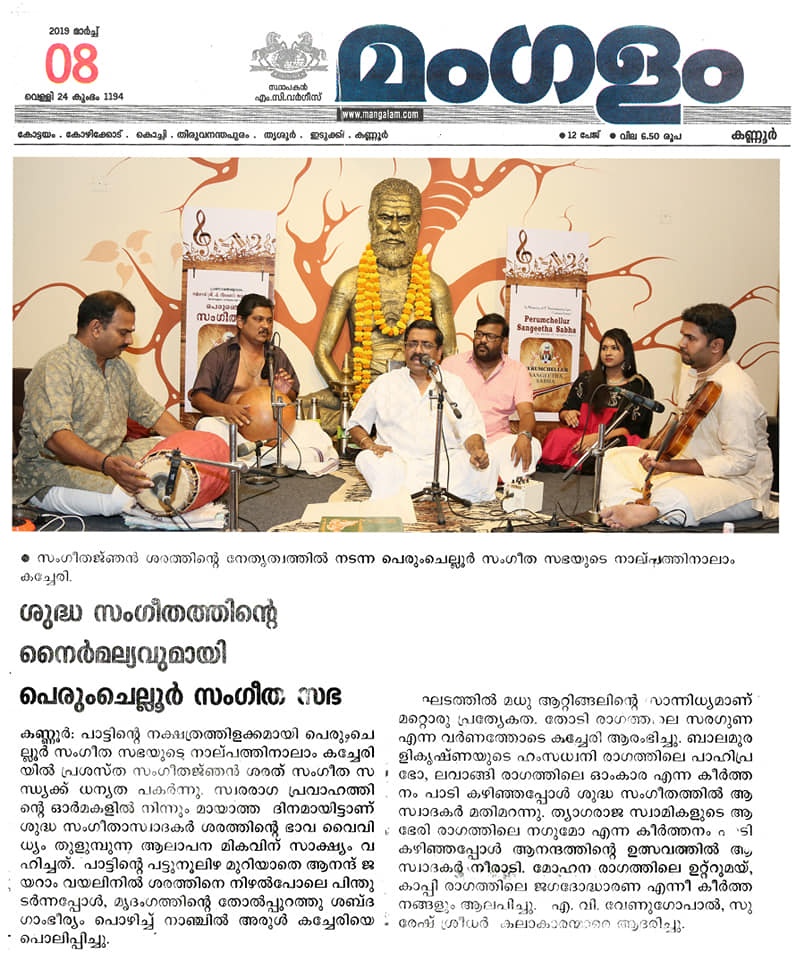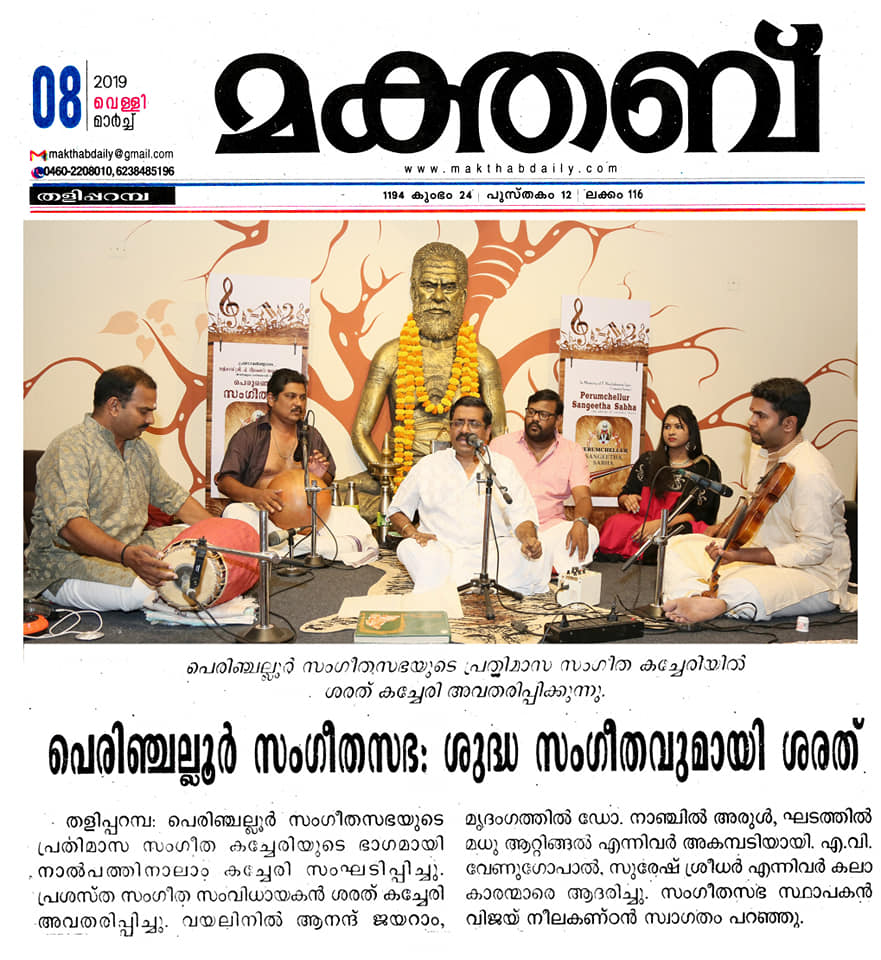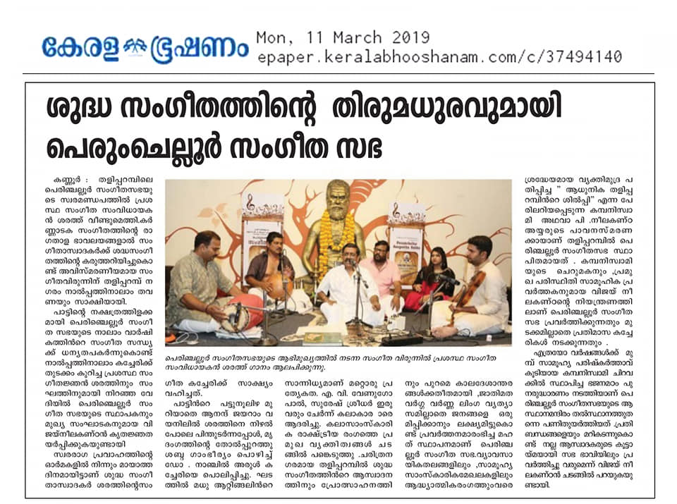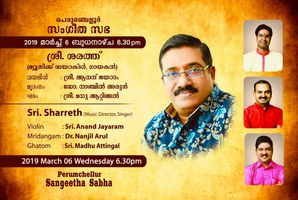 Sri. Sharreth - A singer, composer & Carnatic vocalist - A protégé of Carnatic music virtuoso Dr. M. Balamuralikrishna).... Performing again at Perumchellur Sangeetha Sabha, Taliparamba