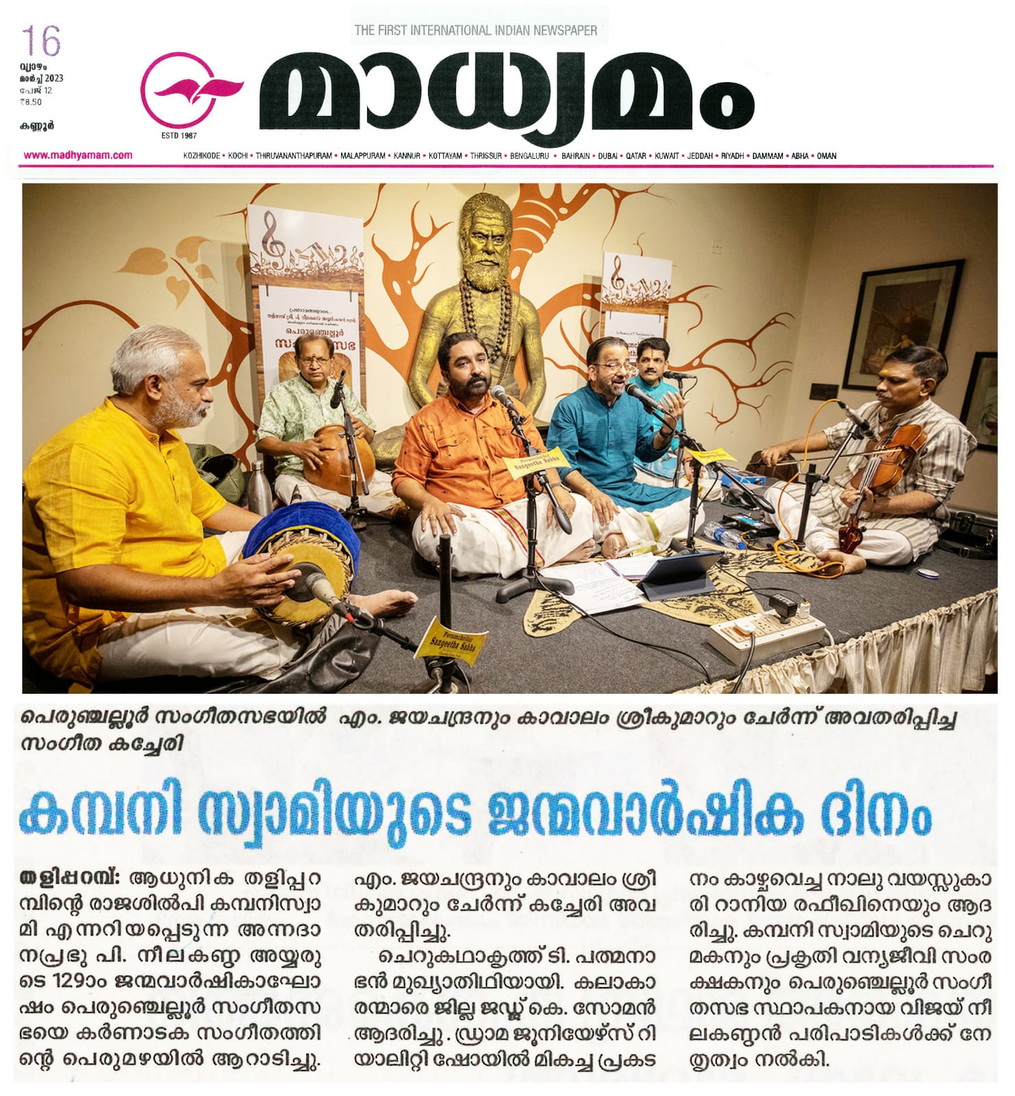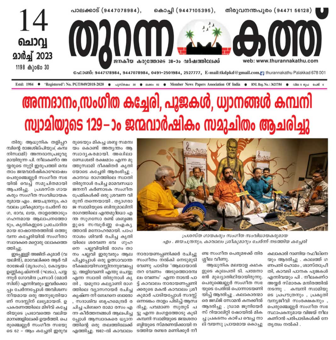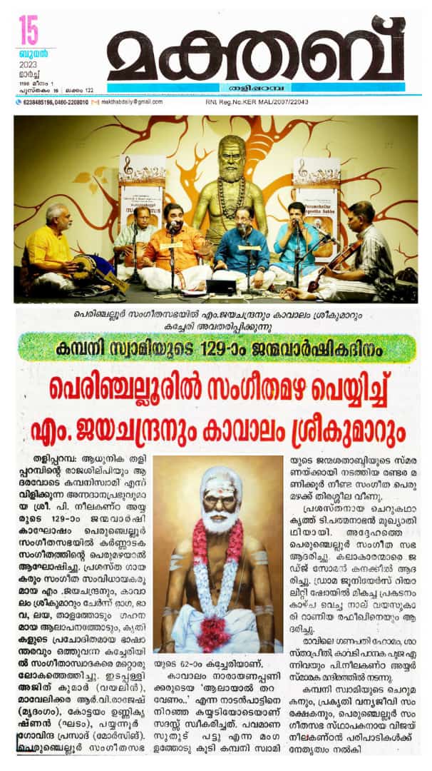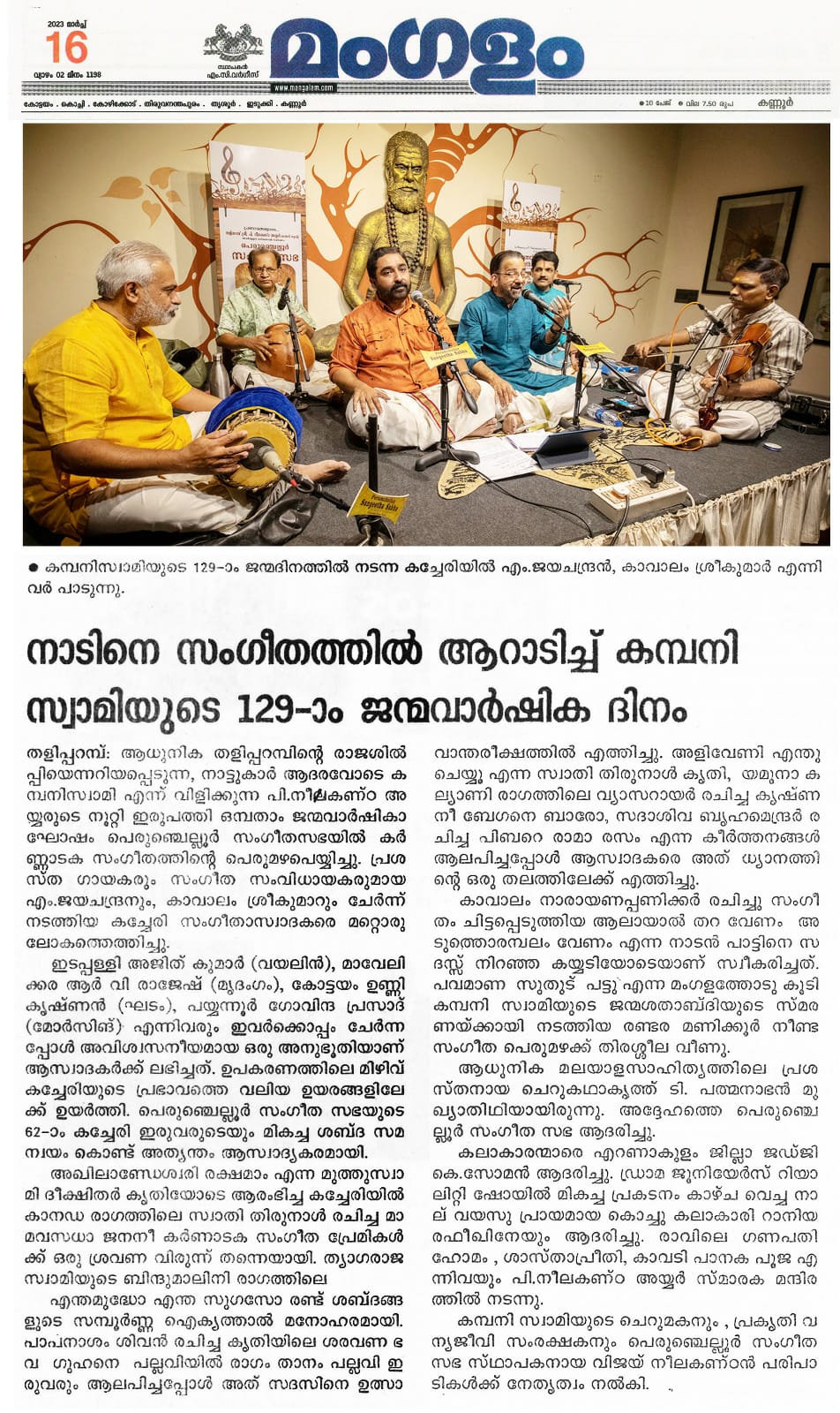 സംഗീതത്തിൽ ആറാടിച്ച് കമ്പനി സ്വാമിയുടെ 129-ആം ജന്മവാർഷിക ദിനം ...