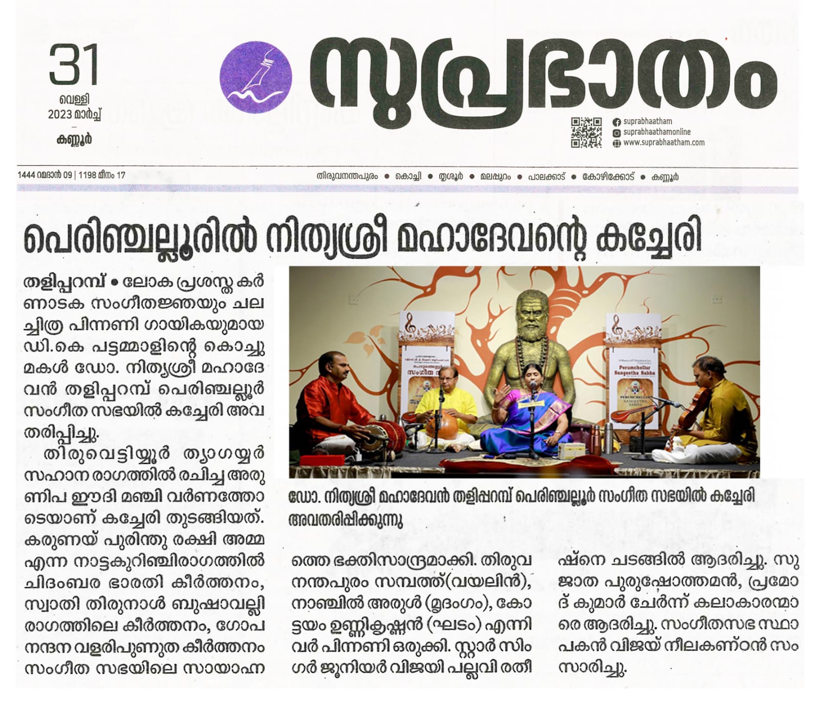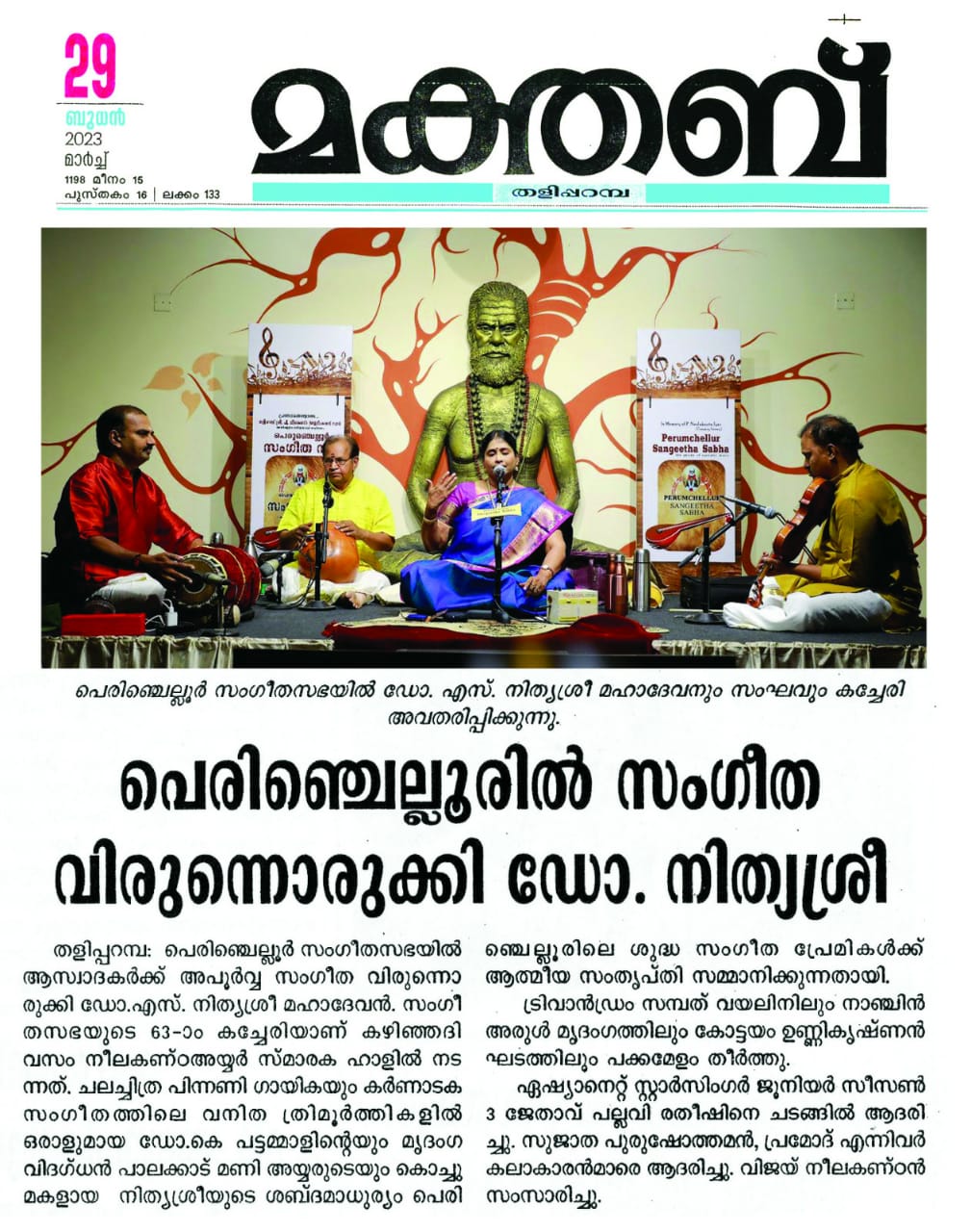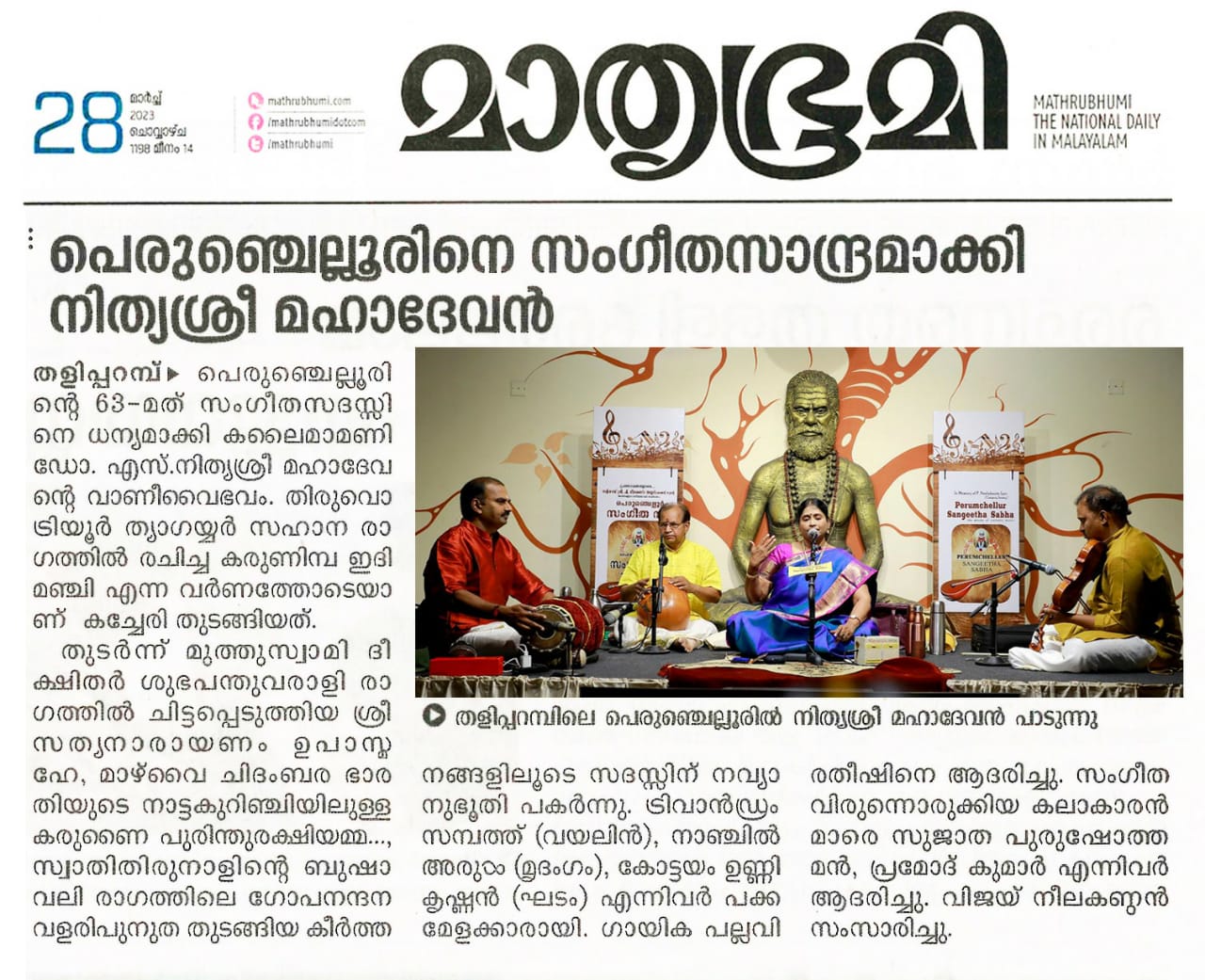 പെരുഞ്ചെല്ലൂരിൽ പാട്ടിന്റെ ശ്രീത്വവുമായി നിത്യശ്രീ മഹാദേവൻ